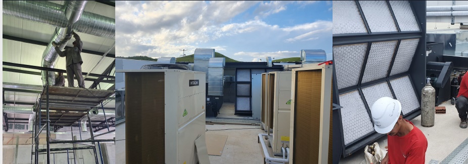 Instalação de sistemas de ar condicionado central de 120 TRs, de ar exterior e de exaustão mecânica de coifas em Rio Bonito - RJ.